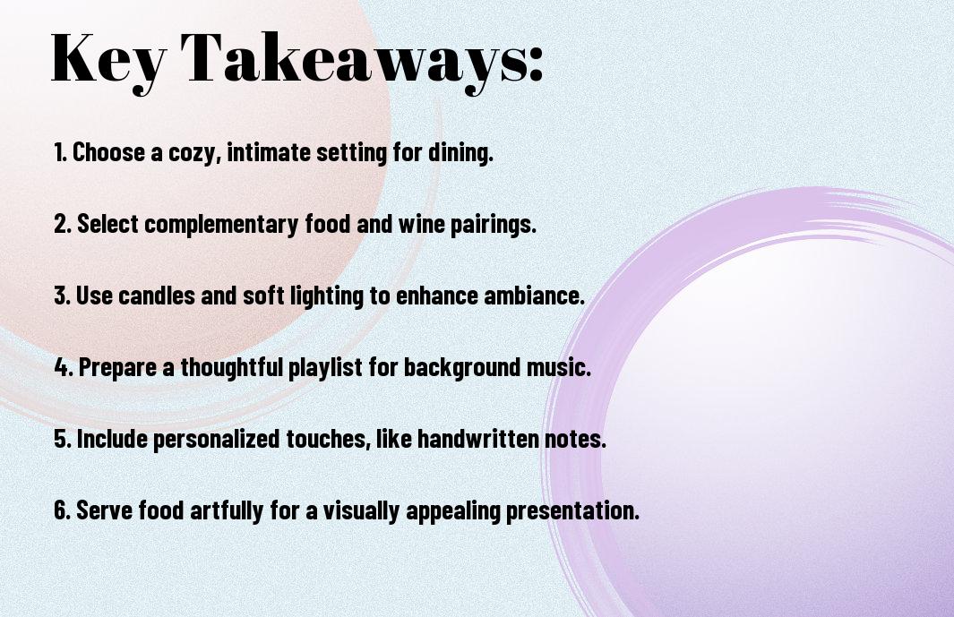 Keep in mind that a well-paired wine can elevate your romantic dinner experience. You’ll want to consider the flavors and textures of your food when selecting a wine.