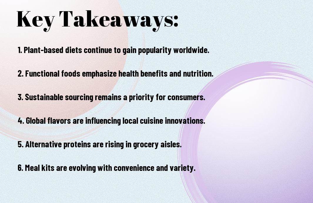 Taking this into account, you now have a comprehensive overview of the top food trends for this year. You can incorporate these trends into your diet, exploring new flavors and ingredients to elevate your culinary experience. Your taste buds will thank you as you explore into the world of innovative and delicious food options, making your dining experiences even more enjoyable and satisfying.