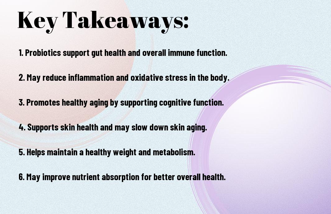 Most people are curious about the effects of probiotics on their health, especially as they age. As you navigate the world of supplements and wellness trends, understanding the impact of probiotics on aging can be not only beneficial but also fascinating. Let’s probe into the scientific realm of how consuming probiotics may influence the aging process and overall health of your body.